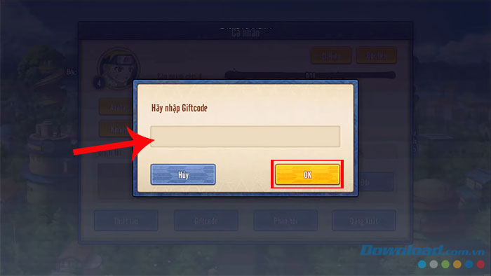 Bước 3: Nhập chính xác hoặc sao chép mã code được cung cấp phía trên và dán vào ô trống. Sau đó nhấn nút OK để xác nhận dùng code.