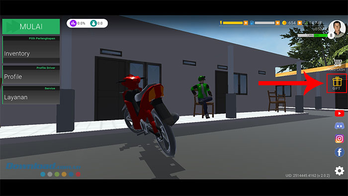 Bước 1: Mở ứng dụng trò chơi Ojol The Game trên thiết bị và chạm vào biểu tượng hộp quà Gift ở phía bên phải giao diện chính.