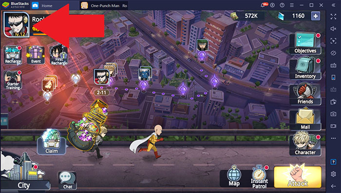 Bước 1: Mở trò chơi One Punch Man: Road to Hero trên thiết bị.