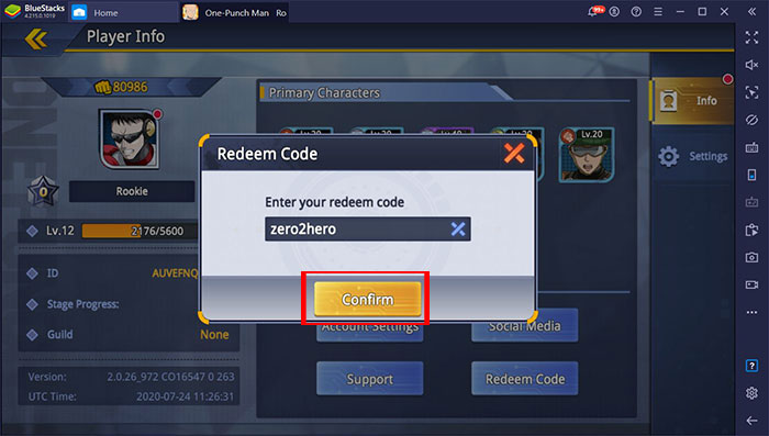 Bước 3: Chọn nút Redeem Code trong mục Functions ở trang thông tin người chơi.