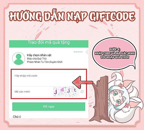 Bước 4: Nhập chính xác hoặc sao chép mã code được cung cấp phía trên và dán vào ô Hãy nhập mã code. Tiếp tục nhập Mã xác minh và nhấn nút Đổi ngay để dùng code và thu thập phần thưởng.