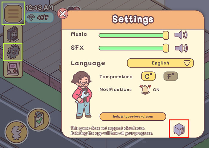 Bước 3: Khi menu cài đặt được mở, nhấp vào biểu tượng két sắt.