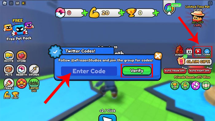 Nhập Code [BOSS] Pull a Sword là một thao tác rất đơn giản, tương tự như các game Roblox khác. Tuy nhiên, code Pull a Sword chia thành 2 loại là code Pull a Sword Youtube và code Pull a Sword Twitter, do đó, người chơi cần nhập đúng chỗ để code hoạt động.