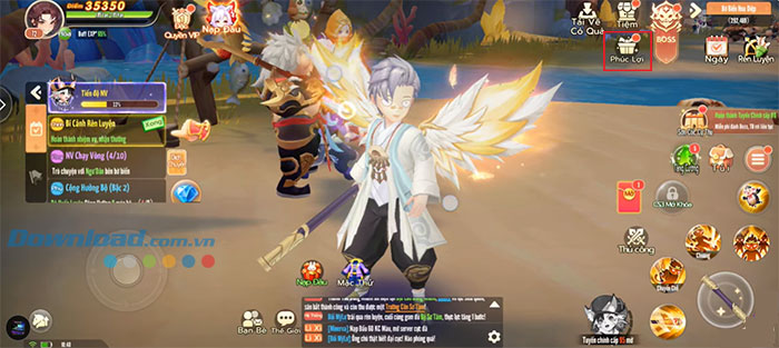 Bước 1: Mở Ra đi ạ, Tróc Yêu Ký trên thiết bị và nhấn vào biểu tượng Phúc Lợi ở phía trên bên phải giao diện chính.