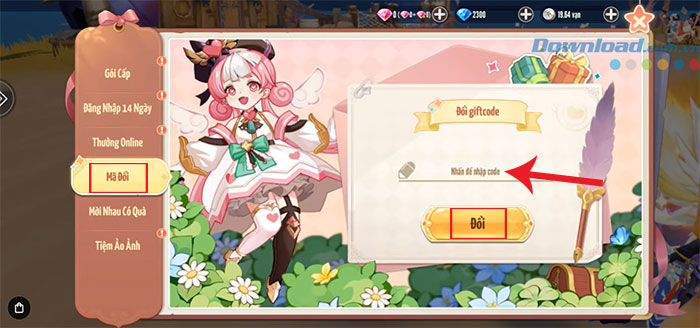 Bước 2: Truy cập tab Mã đổi. Nhập chính xác hoặc sao chép mã code được cung cấp ở phía trên vào ô trống và nhấn nút Đổi để thu thập để thu thập phần thưởng tương ứng.