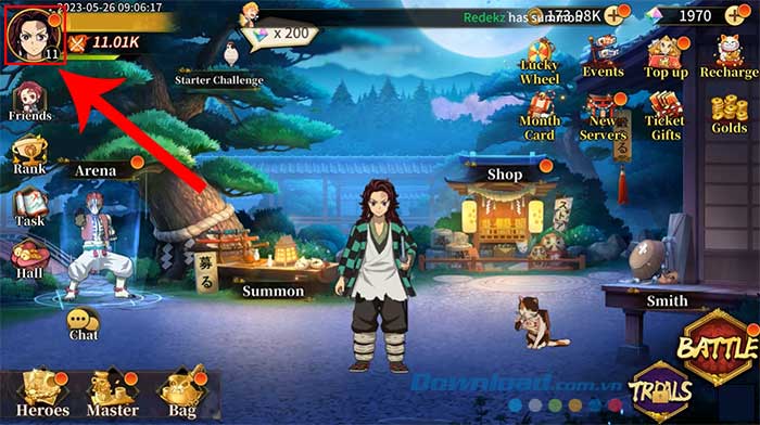 Bước 1: Mở Rage of Demon King trên thiết bị và nhấn vào biểu tượng avatar nhân vật ở góc trên cùng bên trái giao diện.