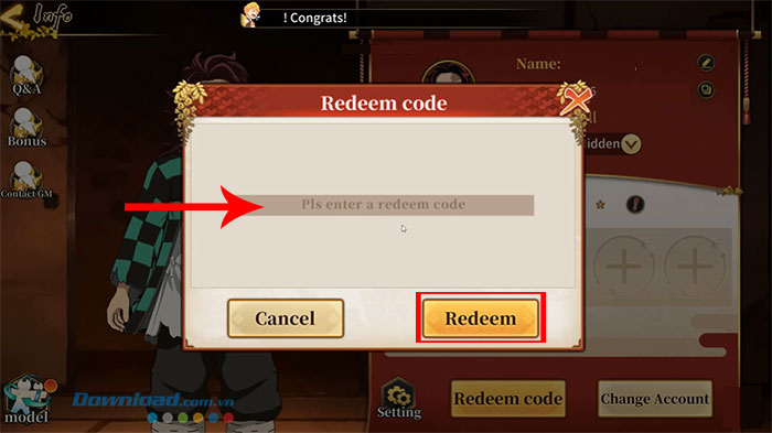 Bước 3: Nhập chính xác hoặc sao chép mã code được cung cấp ở phía trên vào ô trống và nhấn nút Redeem. Phần thưởng sẽ được gửi tới ngay lập tức trong trò chơi.