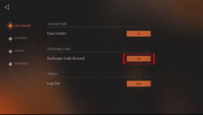 Bước 2: Tại tab Account trong cửa sổ vừa mở, ấn nút Go bên cạnh Exchange Code Reward.
