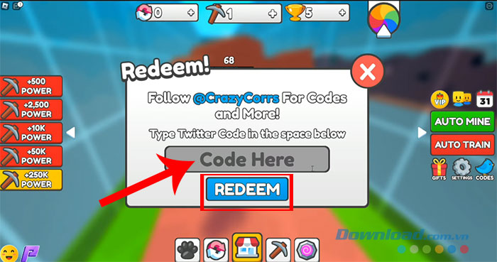 Bước 3: Nhấn nút Redeem để dùng code và nhận phần thưởng ngay lập tức trong trò chơi.