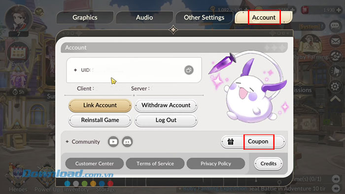 Bước 3: Truy cập tab Account và ấn nút Coupon.