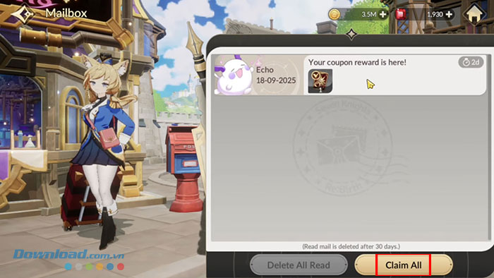 Bước 5: Thông báo nhập code thành công sẽ hiển thị. Người chơi quay trở lại giao diện chính trò chơi, mở hộp thư và thu thập phần thưởng tương ứng.