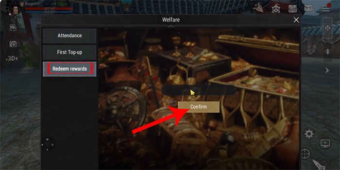 Bước 3: Nhập chính xác hoặc sao chép mã code được cung cấp ở phía trên vào ô trống. Cuối cùng, nhấn Confirm để dùng code và thu thập phần thưởng tương ứng.