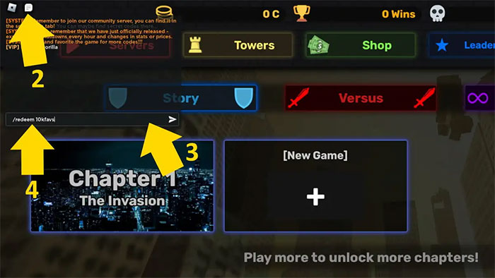Cách nhập code Skibi Defense 3.0 rất đơn giản với các bước cụ thể như sau: