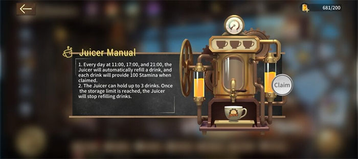 Mỗi trận chiến phải đối mặt trong Sky Fortress: Odyssey đều là những công việc khó khăn. Các anh hùng cần có sức chịu đựng để chiến đấu, vì vậy hãy nhớ sử dụng máy ép trái cây có sẵn để bổ sung sức chịu đựng cho toàn đội. Máy ép trái cây sẽ đổ đầy 3 lần một ngày, giúp các anh hùng có đủ sức chịu đựng trong một thời gian chiến đấu dài.