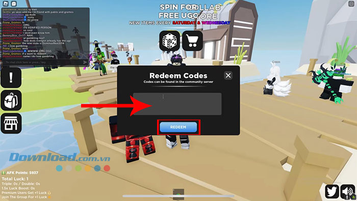 Bước 2: Nhập chính xác hoặc sao chép mã code được cung cấp phía trên vào ô trống. Cuối cùng, ấn vào nút Redeem để xác nhận dùng code và thu thập phần thưởng ngay lập tức.