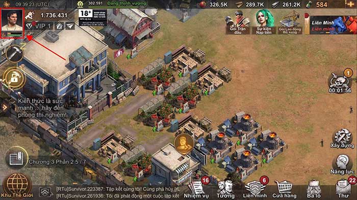 Bước 1: Mở State of Survival trên thiết bị, nhấn vào biểu tượng avatar nhân vật ở góc trên bên trái giao diện chính.