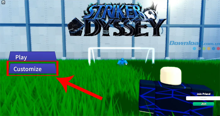 Bước 1: Mở Striker Odyssey trên Roblox và nhấn vào nút Customize ở phía bên trái của giao diện chính.