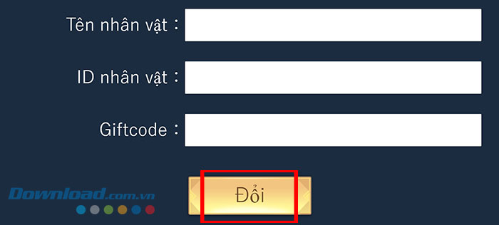 Bước 2: Nhập Tên nhân vật, ID nhân vật và mã Giftcode được cung cấp phía trên vào các ô trống tương ứng.