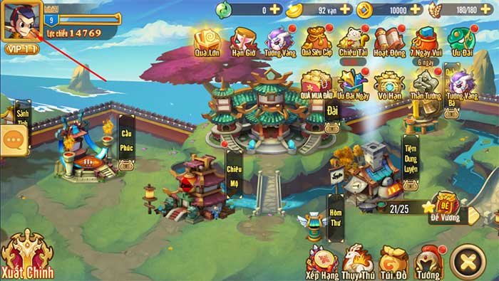 Bước 1: Mở Thiên Long 3Q trên thiết bị và nhấn vào biểu tượng avatar nhân vật ở góc trên cùng bên trái giao diện chính.