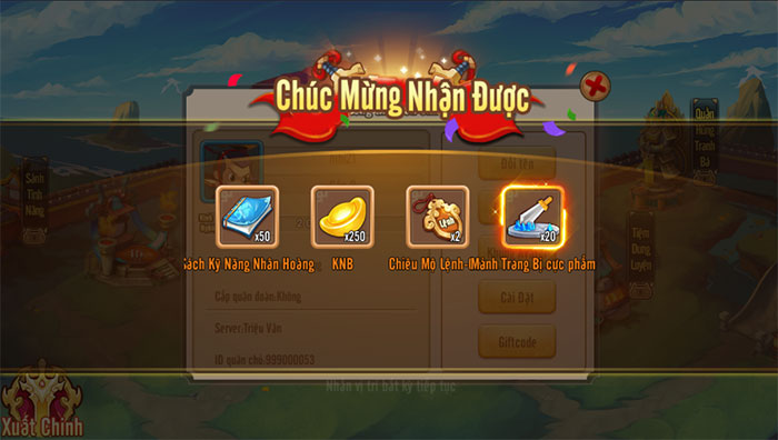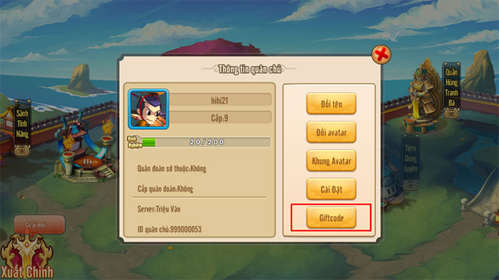 Bước 2: Trong cửa sổ Thông tin quân chủ, nhấn nút Giftcode.