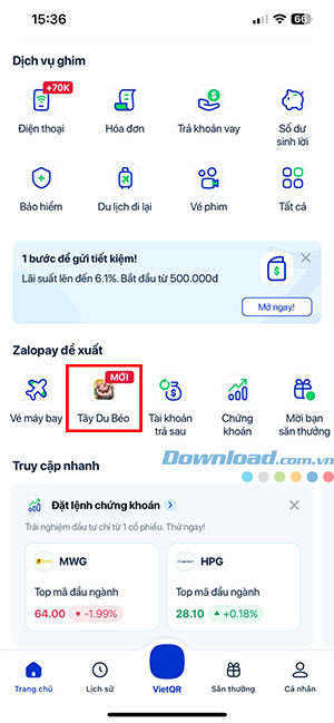 Bước 2: Tại mục Zalopay đề xuất, nhấn vào trò chơi Tây Du Béo VNG.