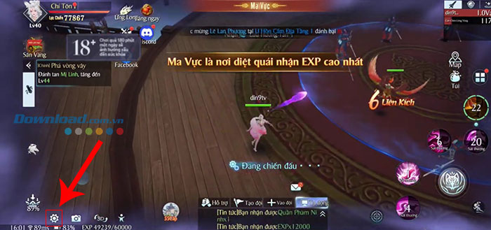 Bước 1: Mở Thanh Vân Quan 4D trên thiết bị và nhấn vào biểu tượng bánh răng cài đặt ở góc dưới cùng bên trái giao diện chính.