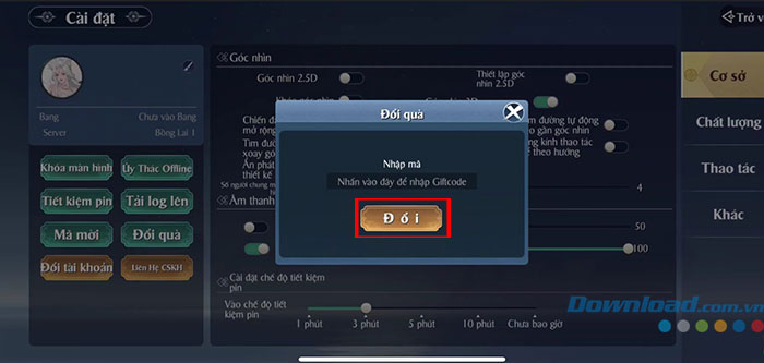 Bước 3: Nhập chính xác hoặc sao chép mã code được cung cấp phía trên vào ô trống. Cuối cùng, nhấn nút Đổi để dùng code và thu thập phần thưởng tương ứng trong hộp thư.