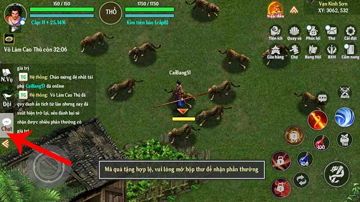Bước 1: Mở Thập Diện Mai Phục trên thiết bị và nhấn vào biểu tượng chat ở phía bên trái giao diện chính của trò chơi.