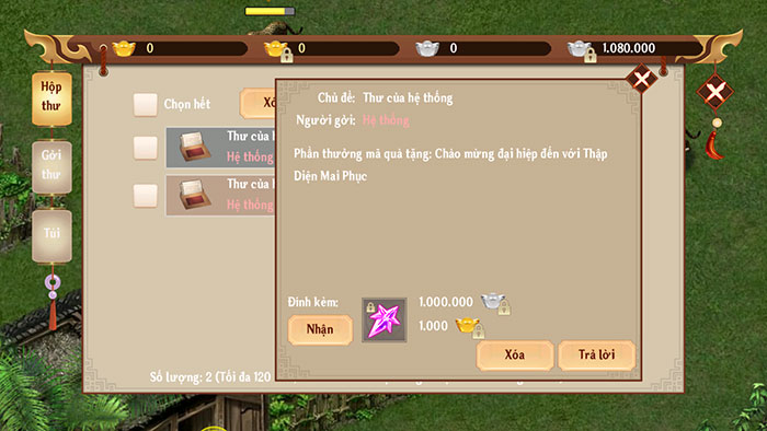 Bước 3: Quay trở lại giao diện chính của trò chơi, truy cập Thư ở góc trên bên phải. Cuối cùng, mở và nhận phần thưởng tương ứng trong thư của hệ thống.