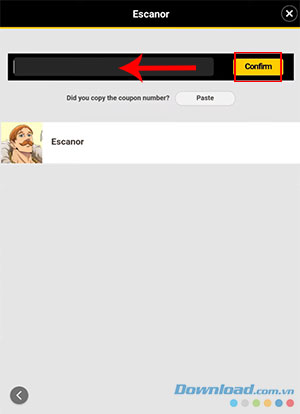 Bước 3: Nhập code được cung cấp ở trên vào ô trống và nhấn nút Confirm.