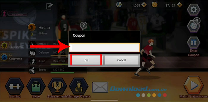 The Spike có tính năng nhập code quy đổi trực tiếp trong trò chơi. Game thủ cần thực hiện theo các bước dưới đây để tiến hành sử dụng code The Spike - Volleyball Story.