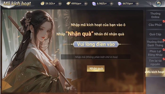 Bước 3: Nhập chính xác hoặc sao chép mã code được cung cấp ở phía trên vào ô trống và nhấn nút Nhận quà để thu thập phần thưởng trong hộp thư in-game.