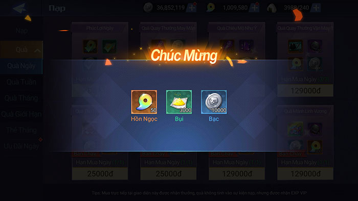 Bước 3: Cuối cùng, bấm nút Nhận quà để dùng code và thu thập phần thưởng ngay lập tức trong trò chơi.