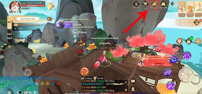 Bước 1: Mở Trận Chiến Huyền Ảo trên thiết bị và nhấn vào biểu tượng túi quà Phúc Lợi phía trên bên phải giao diện chính của trò chơi.