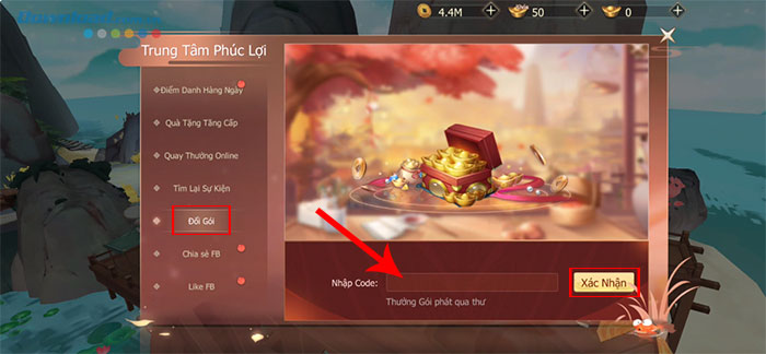 Bước 3: Nhập chính xác hoặc sao chép mã code được cung cấp ở phía trên và dán vào ô trống tại mục Nhập Code. Sau đó, bấm nút Xác nhận.