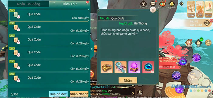Bước 4: Quay trở lại giao chính, nhấn vào biểu tượng thư để nhận phần thưởng tương ứng.