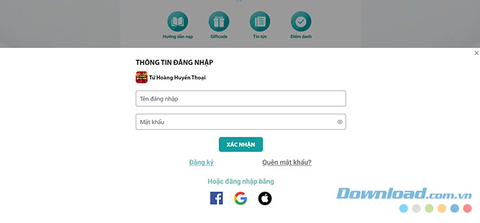 Bước 3: Đăng nhập vào tài khoản trò chơi.