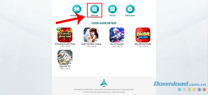 Bước 1: Truy cập vào đường dẫn https://pay.gamate.vn và nhấn vào mục Giftcode.