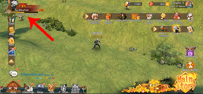 Bước 1: Mở Ultimate Hokage Duel trên thiết bị và nhấp vào biểu tượng hình đại diện nằm ở phía trên bên trái của màn hình.