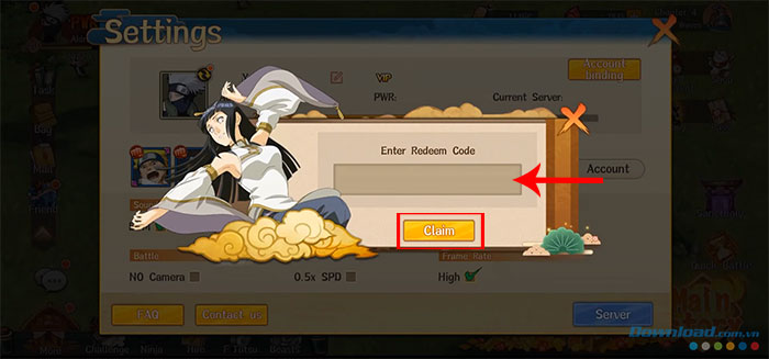 Bước 3: Nhập chính xác hoặc sao chép các mã code được cung cấp ở trên vào ô trống và nhấn nút Claim để xác nhận dùng code, sau đó nhận phần thưởng ngay lập tức trong trò chơi.