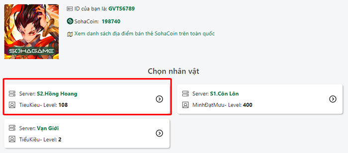 Bước 3: Lựa chọn server và nhân vật Vạn Giới PK đang chơi.