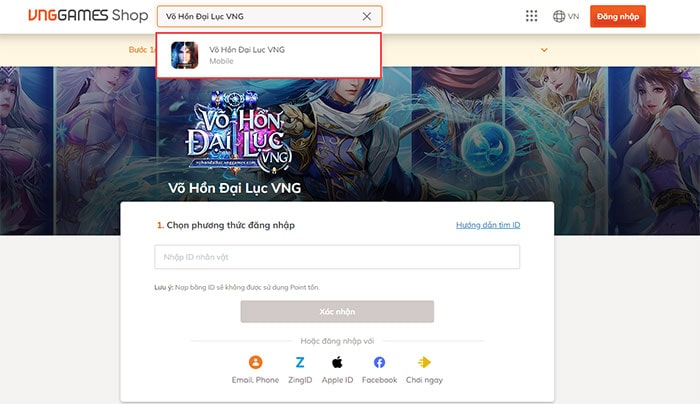 Bước 1: Truy cập vào trang nhập code VNG Games Shop https://shop.vnggames.com/vn/game/vohon.