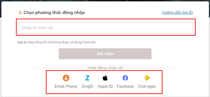 Bước 2: Tiến hành đăng nhập theo cổng đăng nhập trong game hoặc có thể sử dụng ID nhân vật để nhập code trực tiếp vào nhân vật này.