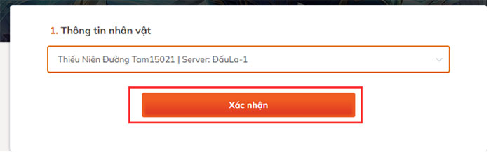Bước 3: Chọn và xác nhận nhân vật/máy chủ đang chơi game (nếu đăng nhập bằng ID nhân vật có thể bỏ qua bước này).
