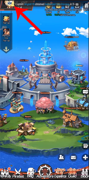 Bước 1: Mở War of The Grand Line trên thiết bị của mình và chạm vào biểu tượng avatar nhân vật nằm phía trên bên trái màn hình.