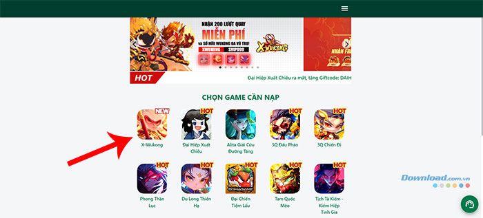 Bước 2: Nhấn chọn X-Wukong Đại Chiến Tam Giới từ danh sách trò chơi.