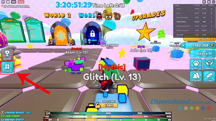 Bước 1: Mở Yeet A Friend trên Roblox và nhấn vào biểu tượng hộp quà ở bên trái giao diện chính của trò chơi.