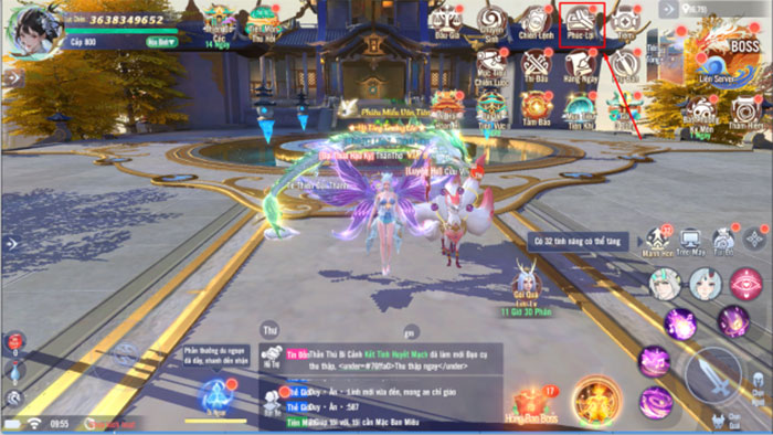 Bước 1: Mở ứng dụng trò chơi Yêu Hồ 9D trên thiết bị và nhấn vào biểu tượng Phúc lợi phía trên bên phải giao diện chính của trò chơi.