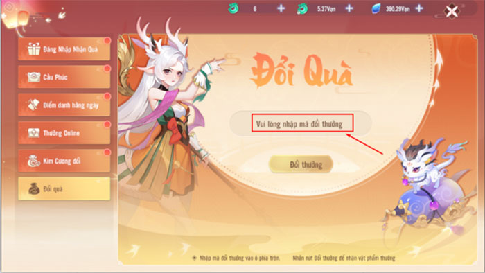 Bước 3: Nhập chính xác hoặc sao chép mã code được cung cấp ở phía trên vào ô trống và nhấn nút Đổi thưởng để thu thập phần thưởng ngay lập tức trong trò chơi.