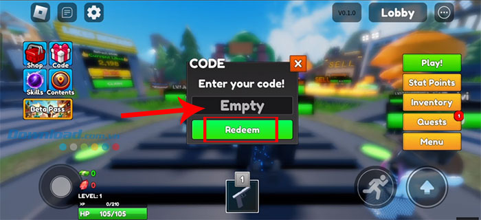 Bước 3: Nhập chính xác hoặc sao chép mã code được cung cấp ở phía trên và dán vào ô trống. Sau đó nhấn nút Redeem để xác nhận dùng code và thu thập phần thưởng ngay lập tức trong trò chơi.